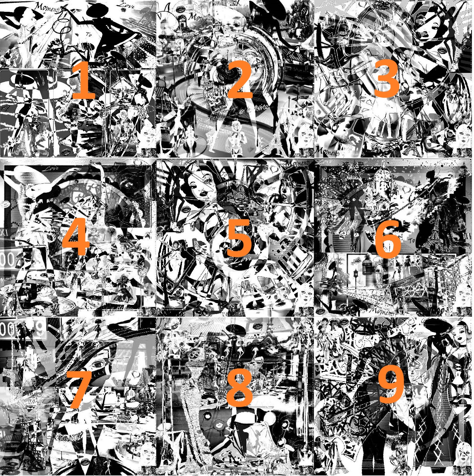Série: 9 tableaux de 058 à 066 séparés, ou pouvant formés un nonaptyque